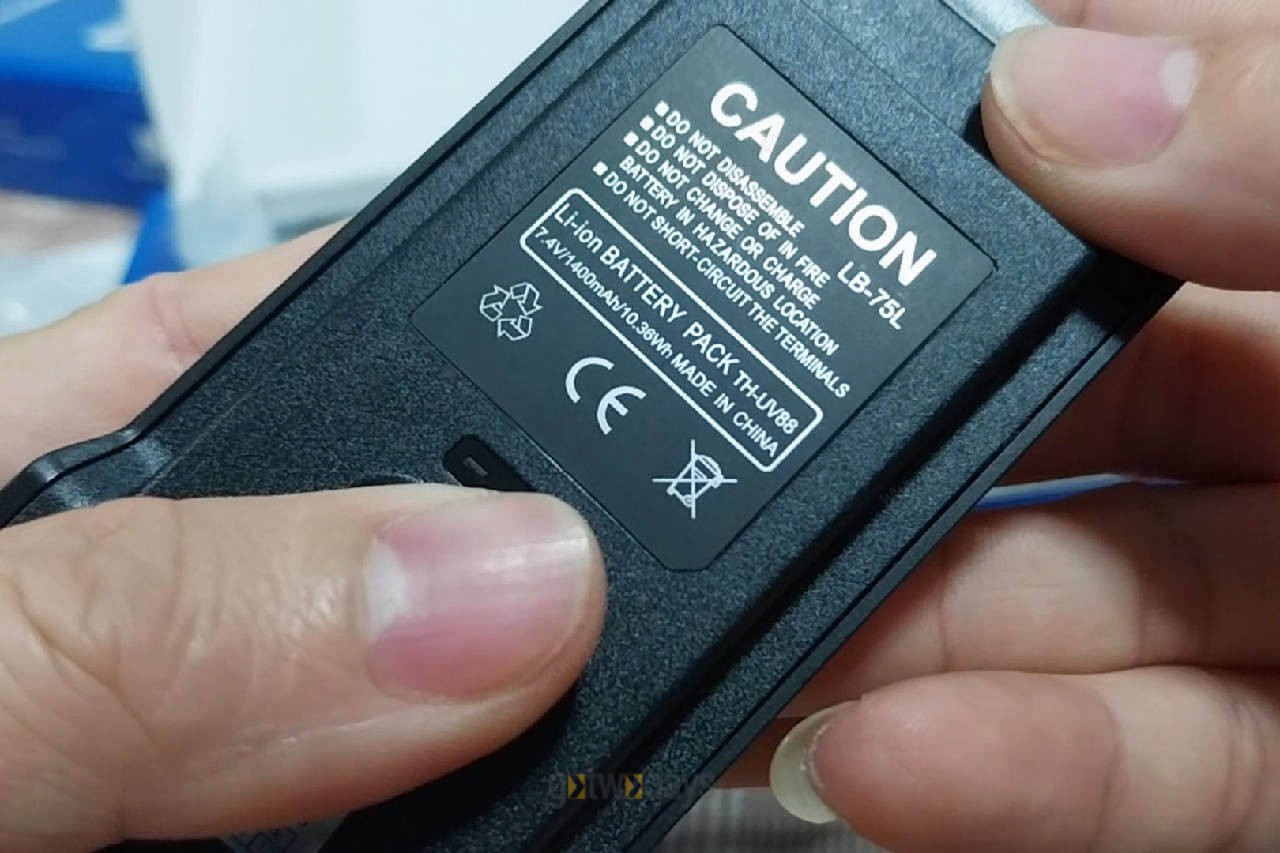 แบตเตอรี่ LB-75L ชนิด Li-ion TH-UV88 ความดัน 7.4 V. ความจุ 1400 mAh หรือ 10.36 wh ระบุสถานที่ผลิต Made in China