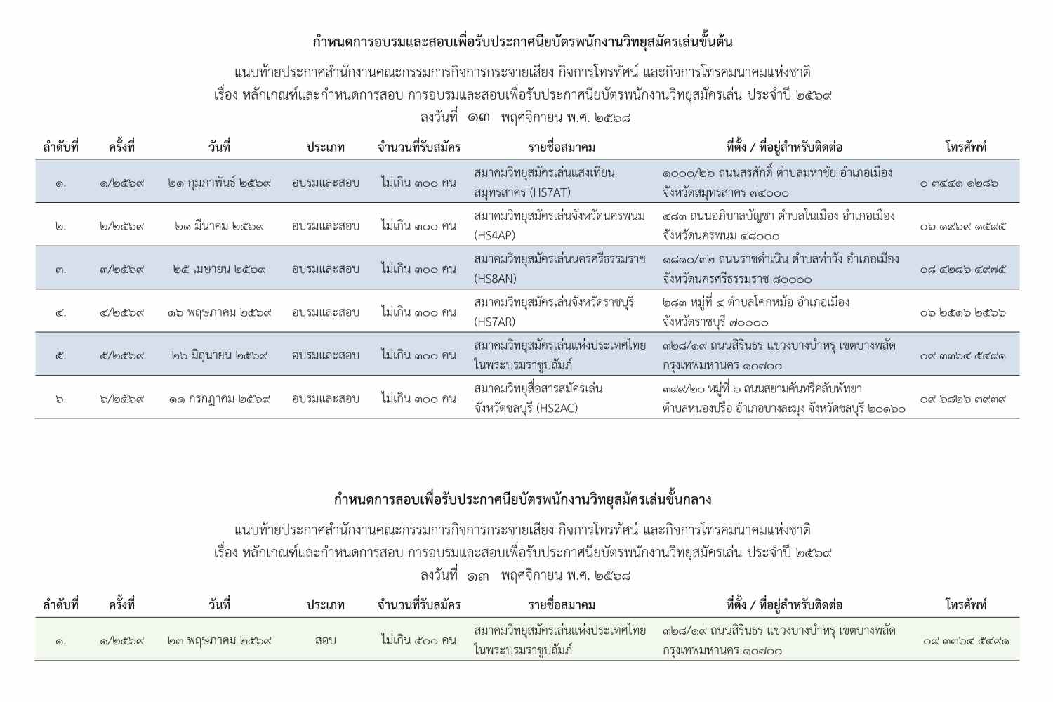 ข้อมูลอ้างอิง ประกาศ กสทช เรื่อง หลักเกณฑ์และกำหนดการสอบ อบรมและสอบเพื่อรับประกาศนียบัตรพนักงานวิทยุสมัครเล่น ประจำปี 2569