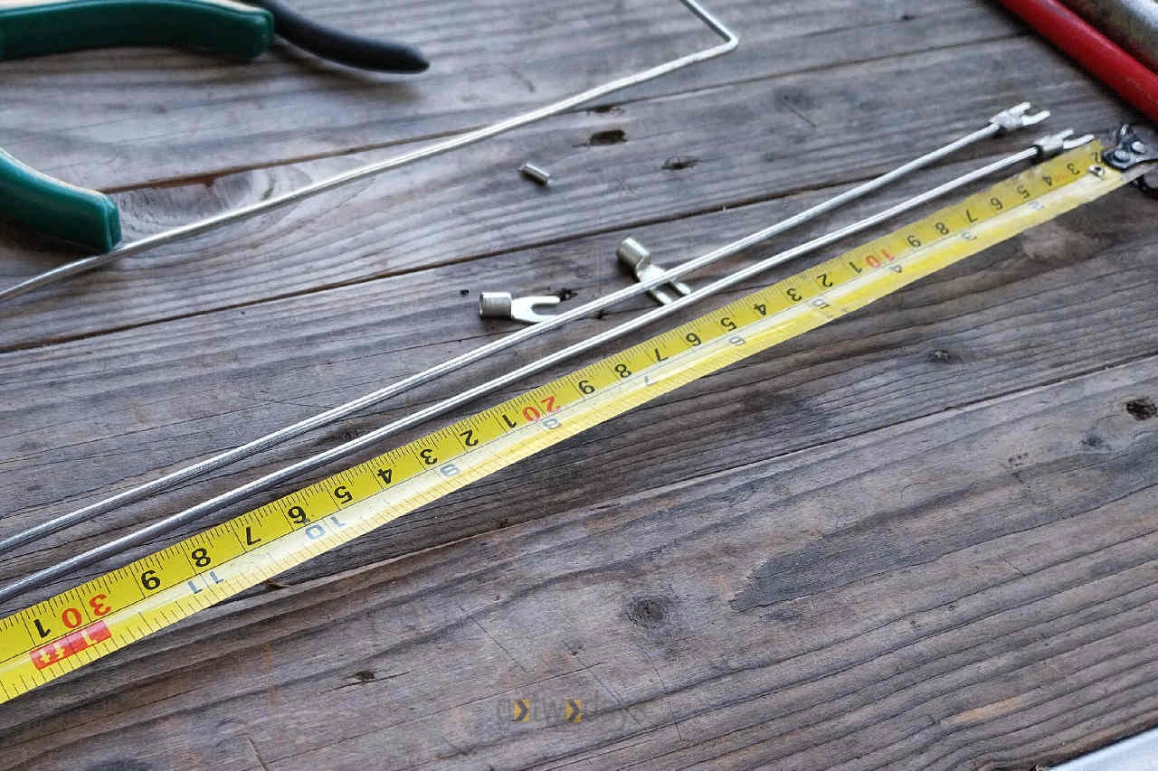 ขั้นต่อไปตัดลวดส่วน Driven element ก่อน ระยะห่างจุดป้อนสัญญาณเว้นไว้ 2cm. เอาไปลบจากความยาว A แล้วแบ่งครึ่ง + B ได้เท่ากับ ((70-2)÷2)+10.6=44.6cm. ตัดไว้ 2ชิ้น
