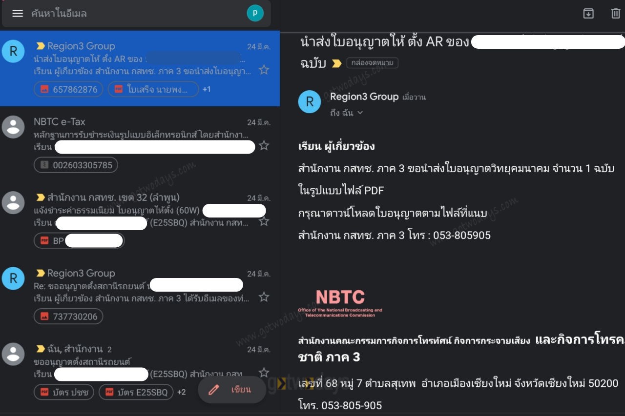 12.05 รับใบอนุญาตและใบเสร็จรับเงิน ทางอีเมล์ จาก กสทช.ภาค3